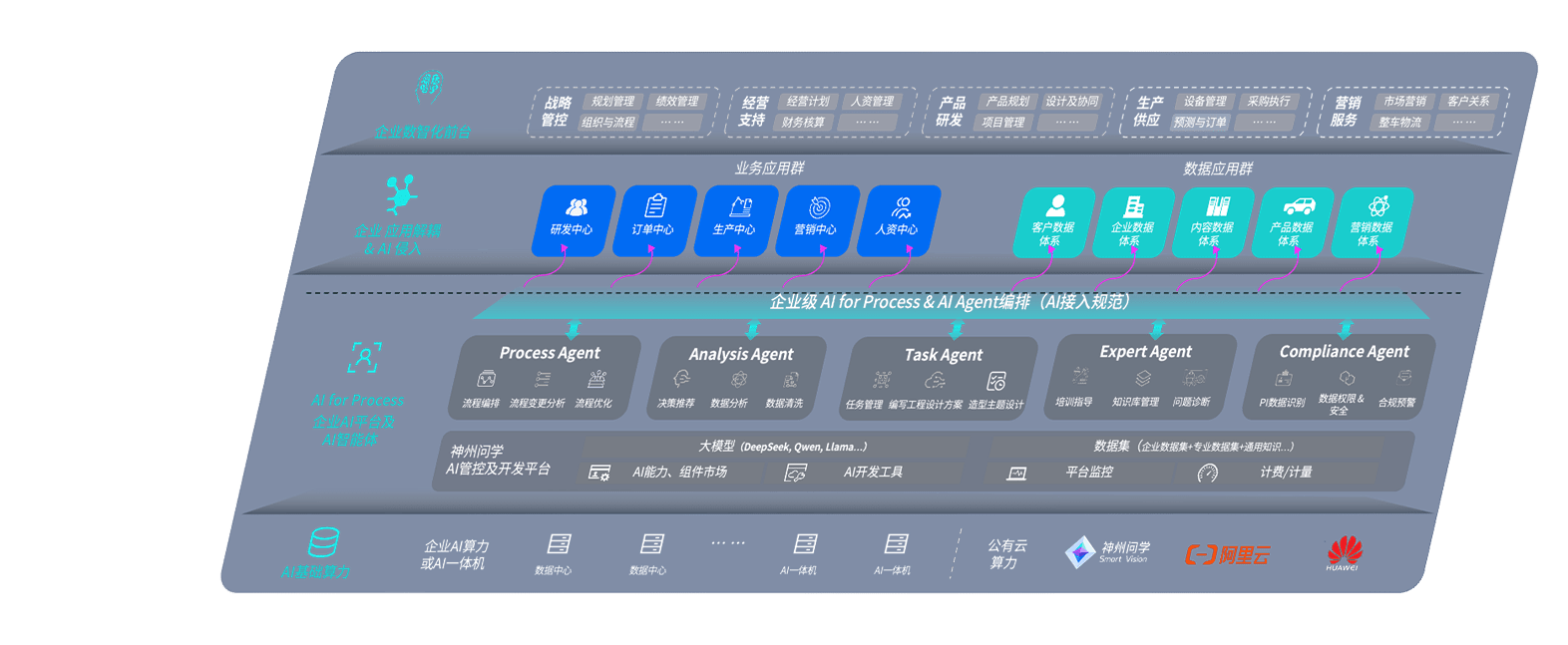 z6com尊龙凯时问学智车解决方案是一套基于AI技术的汽车行业智能化系统,,,,覆盖从底层算力到顶层AI应用的全栈方案。。方案由算力层、、模型层和应用层组成:算力层,,,,方案支持多种一体机配置,,,,具备云端灵活部署、、、多云适配以及动态优化计算资源的能力;模型层,,,z6com尊龙凯时问学平台版提供了企业级AI应用一站式构建与管理平台,,,支持基于后训练强化技术的汽车企业专属模型的训练、、、评测和运营;应用层,,,,z6com尊龙凯时问学DeepSeek版提供包括超级员工、、、智能招采、、智能营销、、、、智能客服、、、、AI for BI等一系列解决方案,,,,可助力汽车行业实现数字化转型,,让管理更智能、、、响应更敏捷。。。。